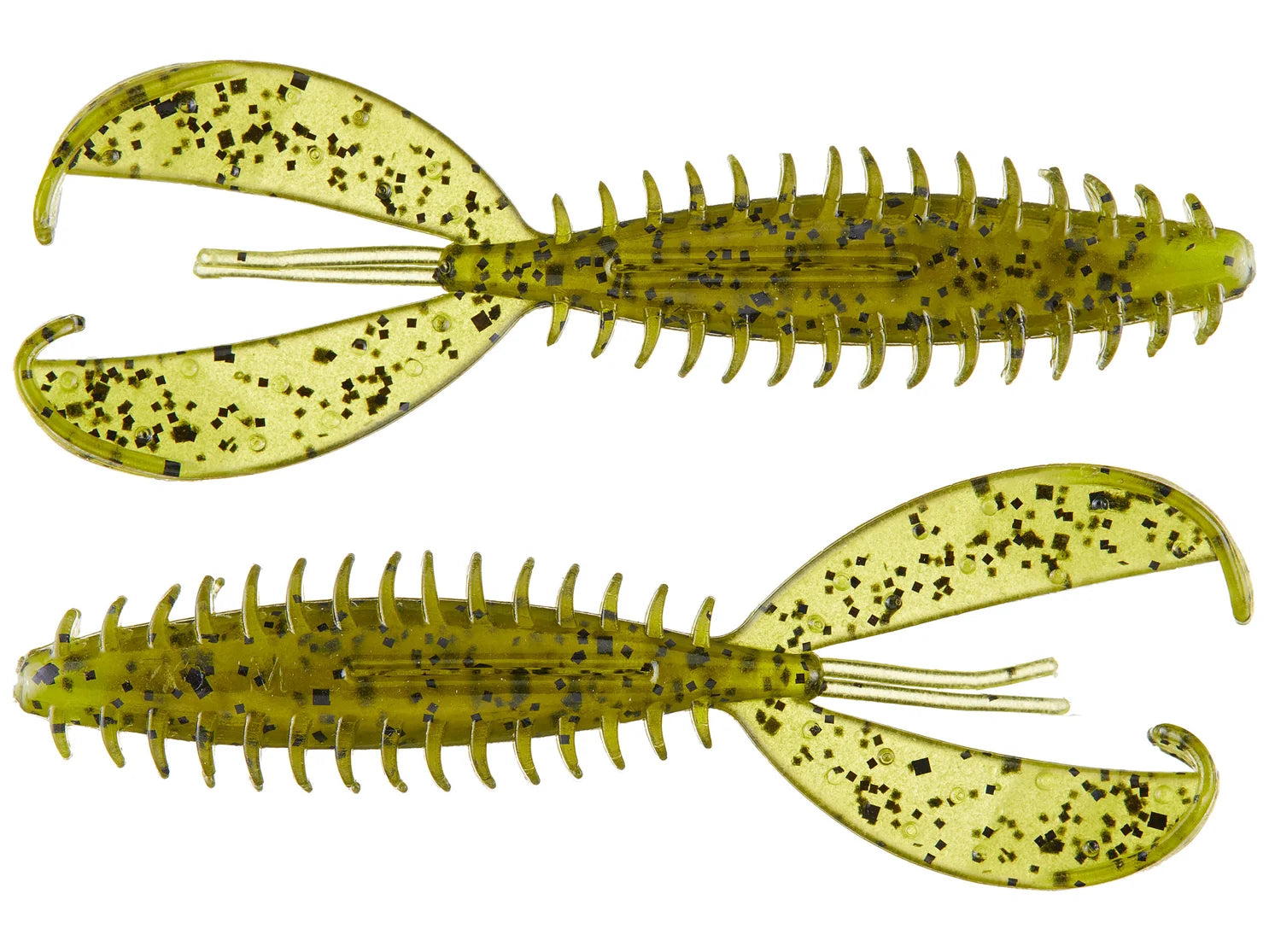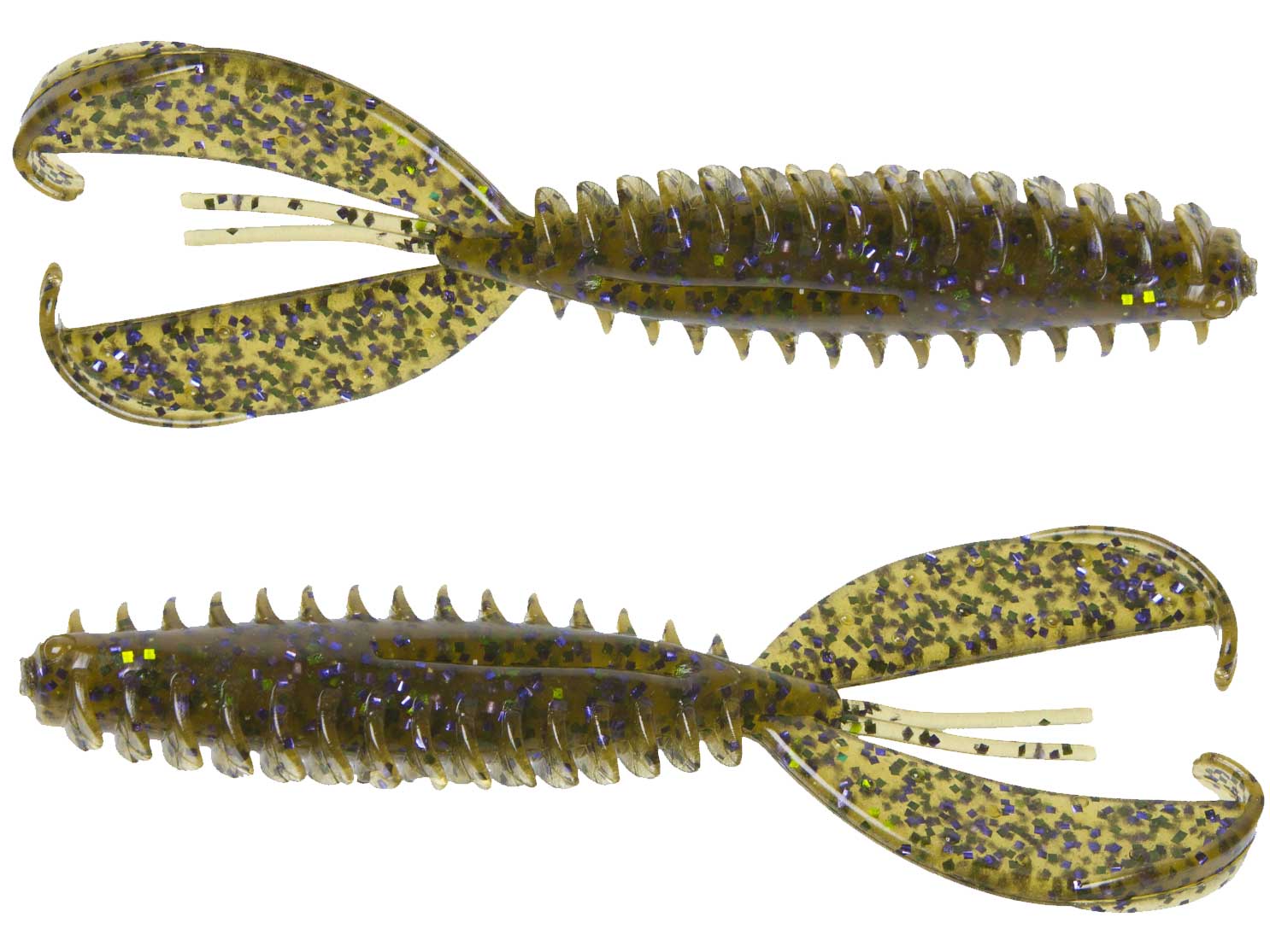 The Z-Craw takes an elongated body with forward facing ribs and adds hook pockets top and bottom as well as fluttering claws, all in a streamlined package designed to slip into the heaviest cover with ease while also pulsating with the sound and fury of an angry crawfish.